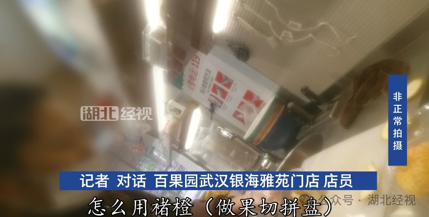 据湖北经视报道,记者应聘百果园武汉银海雅苑门店的店员岗位,门店店长在面试中表示虽然记者没有拿到《食品健康许可证》,但也可以马上上岗。工作期间,记者发现店内小型冰箱存有不新鲜、腐烂的水果,店员趁没有顾客时将腐烂的苹果、橙子制作成高价果切,甚至称之为:“化腐朽为神奇”。