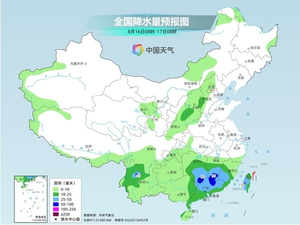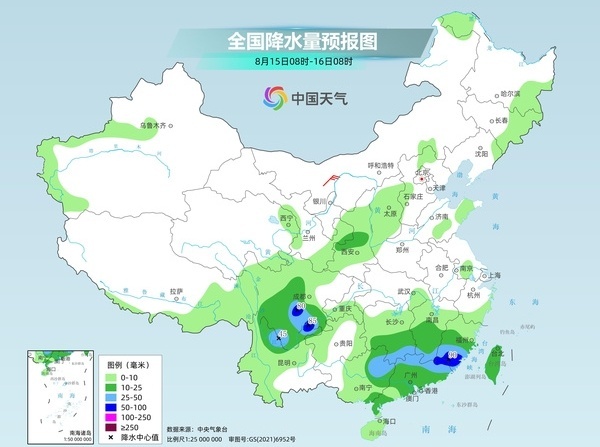 中央气象台预计,今天,甘肃东部、宁夏南部、陕西北部、川西高原东部和四川盆地西部、云南南部、山东南部、安徽、江西、湖南南部、浙江中南部、福建中南部、广西中南部、广东北部和南部、台湾岛大部等地部分地区有大到暴雨,其中,福建东南部、广西东南部、广东西南部等地局部地区有大暴雨。