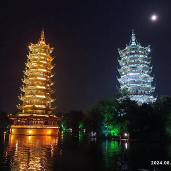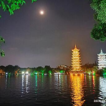 夜游桂林杉湖榕湖,感受看看日月塔的美